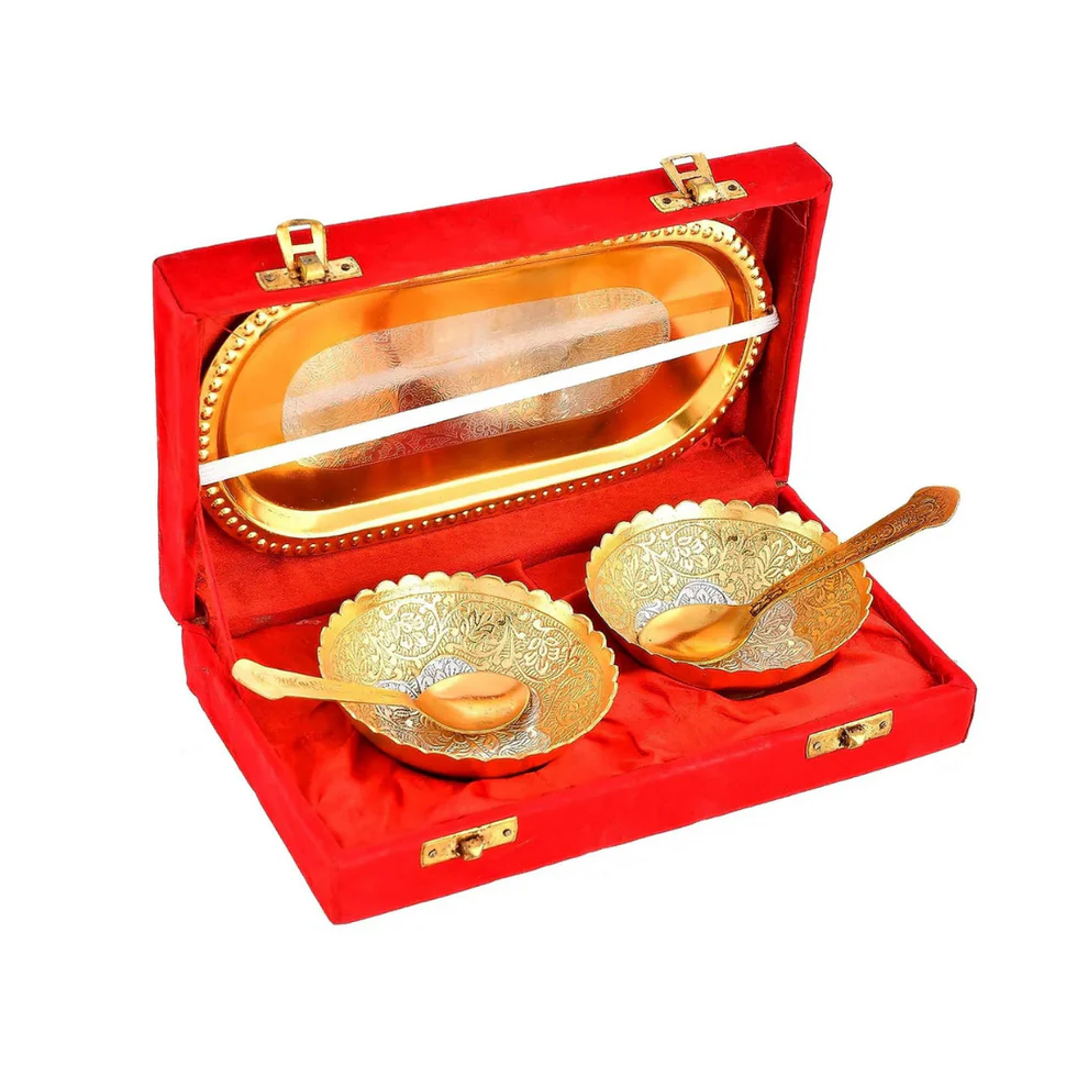 Double Bowl Spoon Golden Tray Set