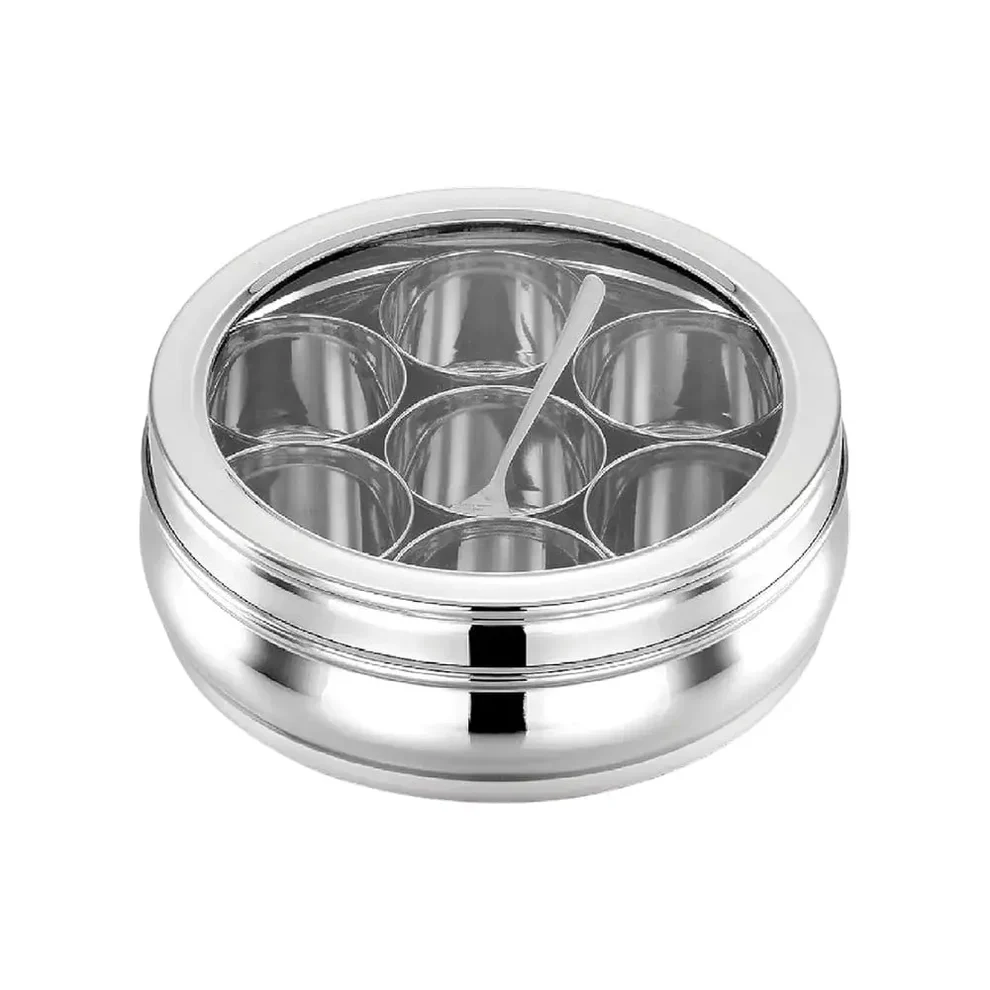 Keep your spices neatly organized with the HOME LANE Masala Box (Stainless Steel), a classic and practical spice storage solution for modern kitchens. Designed with seven inner compartments, this masala dabba allows you to store essential spices in one convenient place for quick and easy access while cooking.