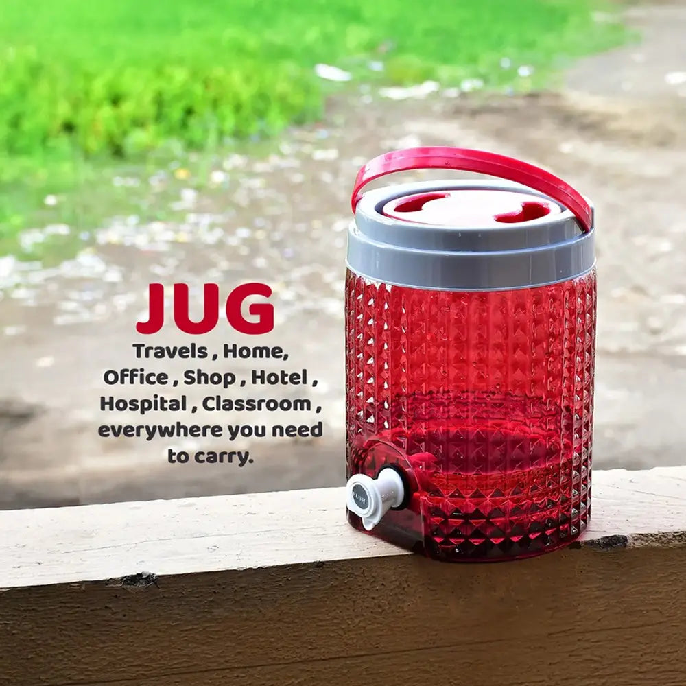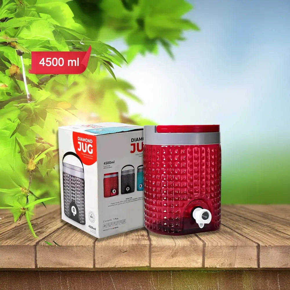 The HOME LANE Diamond Cut Water Jug combines style with functionality, featuring a 4.5 L capacity and a creative diamond-cut design that enhances its appearance. Made from durable plastic, it comes with a push nozzle button at the bottom for easy water dispensing and a sturdy base for stability. Its ergonomic handle ensures comfortable lifting, making it perfect for home use, picnics, or catered events.