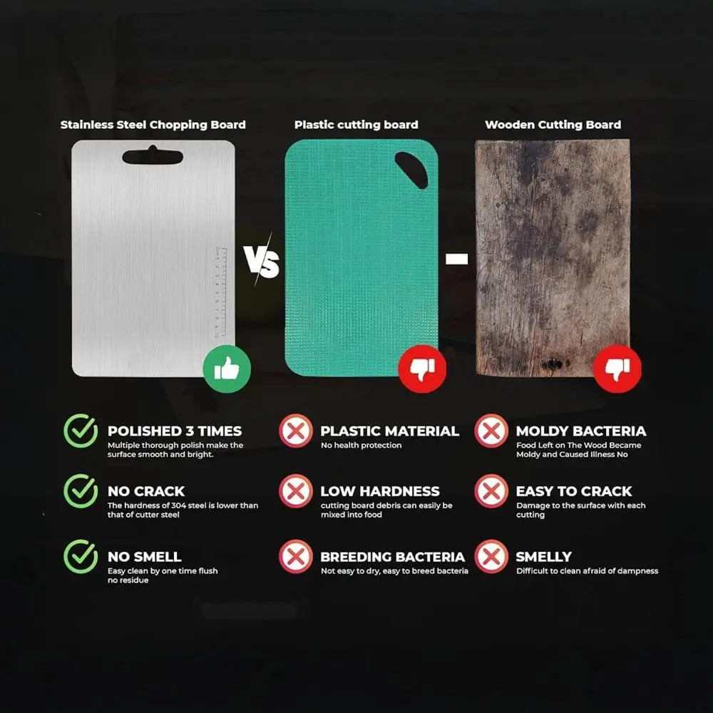 Upgrade your kitchen prep with the HOME LANE Stainless Steel Chopping Board (36 cm x 25 cm, Silver). Crafted from premium rust-resistant stainless steel, this board offers a durable and hygienic surface for chopping vegetables, fruits, and meats. Its non-slip design keeps it stable during use, while heat and water resistance make it ideal for everyday kitchen tasks.