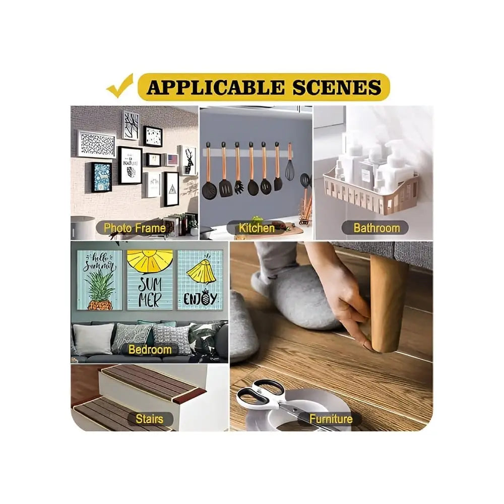 The TINUMS Adhesive Double-Sided Transparent Tape is made from premium nano gel material, providing extra-strong adhesion for long-term use. It can securely hold items up to 6.8 kg and works best on smooth surfaces like glass, tiles, wood, plastic, marble, and metal. The double-sided design allows hassle-free mounting without the need for nails or screws, making it perfect for home, office, and DIY projects.
